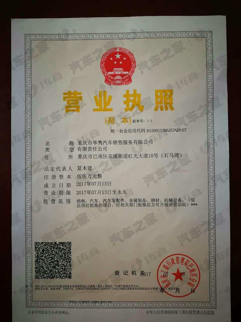 重庆市华隽汽车销售服务有限公司成立于2017年07月13日,注册地位于重庆市巴南区花溪街道红光大道10号(石马湾),经营面积5500平方米,公司注册资本伍佰万元整,法定代表人为夏熙耀。