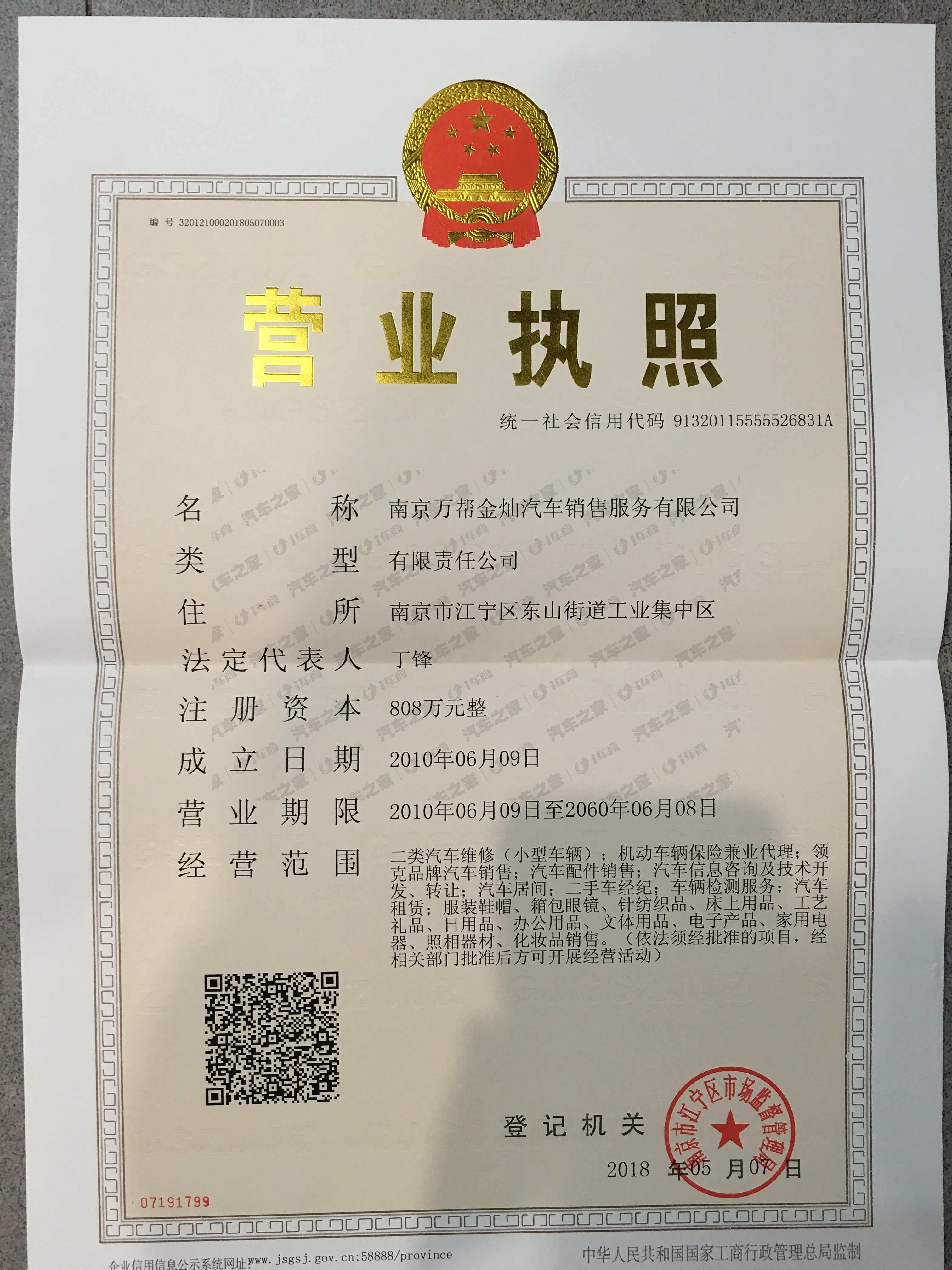 南京万帮金灿汽车销售服务有限公司是江苏万帮金之星车业集团旗下子公司,公司位于南京市江宁区东麒路上坊汽车4S园。