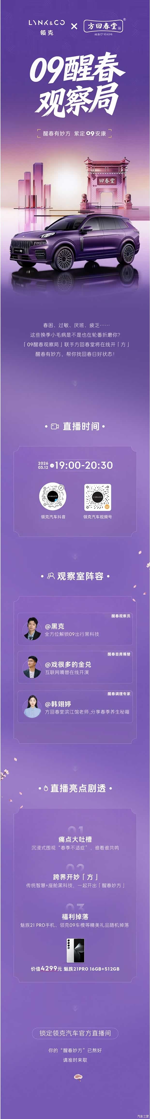 领克09 x方回春堂 09醒春观察局,唤醒春日好状态