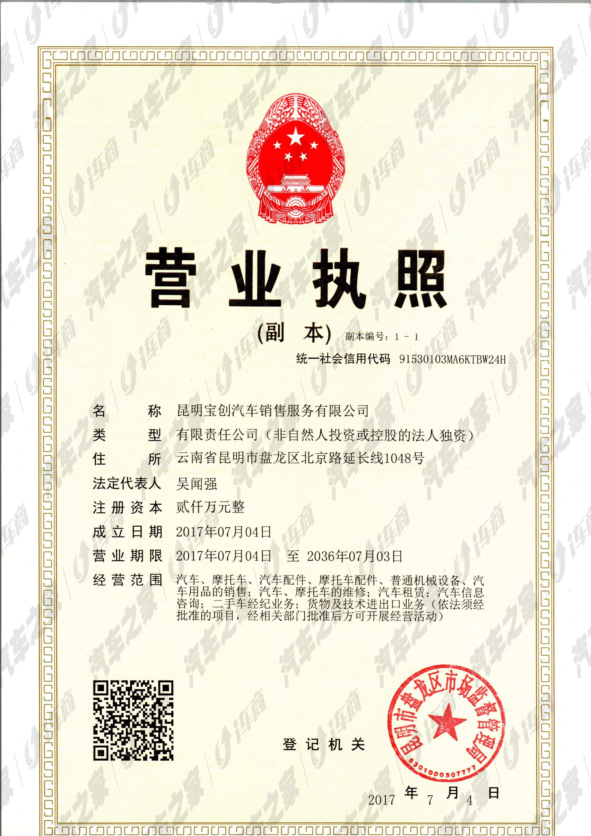 昆明宝创汽车销售服务有限公司(昆明宝创)位于云南省昆明市盘龙区北京路延长线1048号。(都市车迷汽车城内)设施建筑面积5,267平方米,新车展示10台、二手车展示1台、服务工位26台。昆明宝创是集销售、维修、配件供应、信息反馈为一体的4S汽车经销店,专业从事国产及进口宝马品牌汽车整车销售、维修及精品等服务。