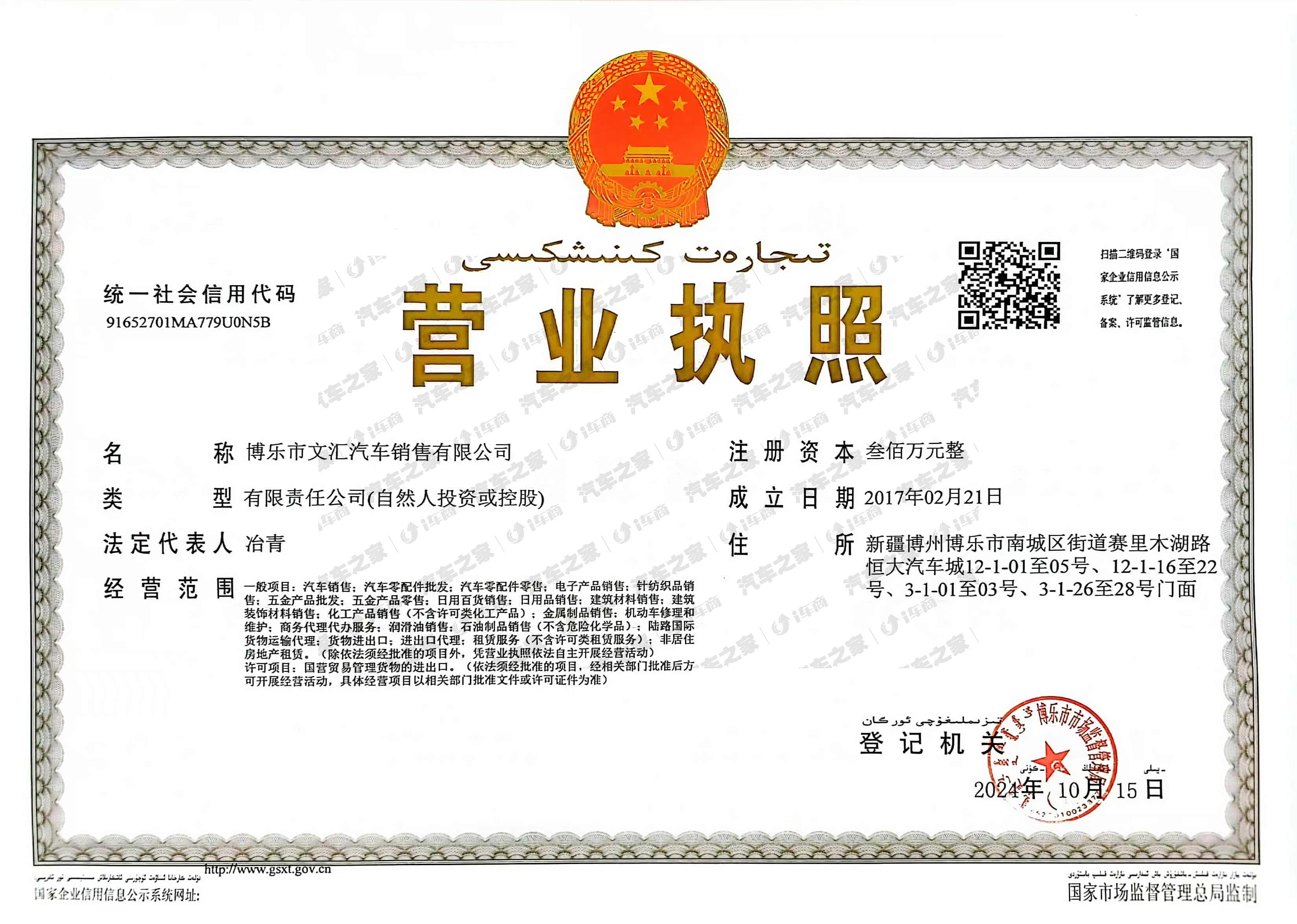 新疆博州博乐市赛里木湖路恒大汽车城12-1-01号铺