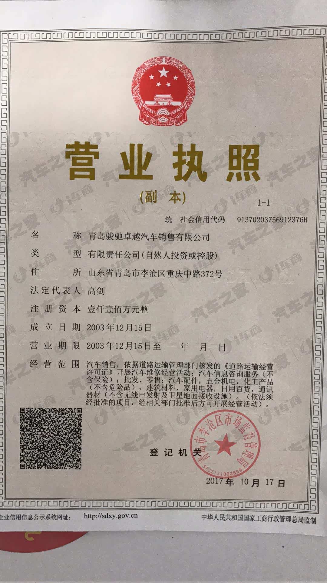 青岛骏驰卓越汽车销售有限公司