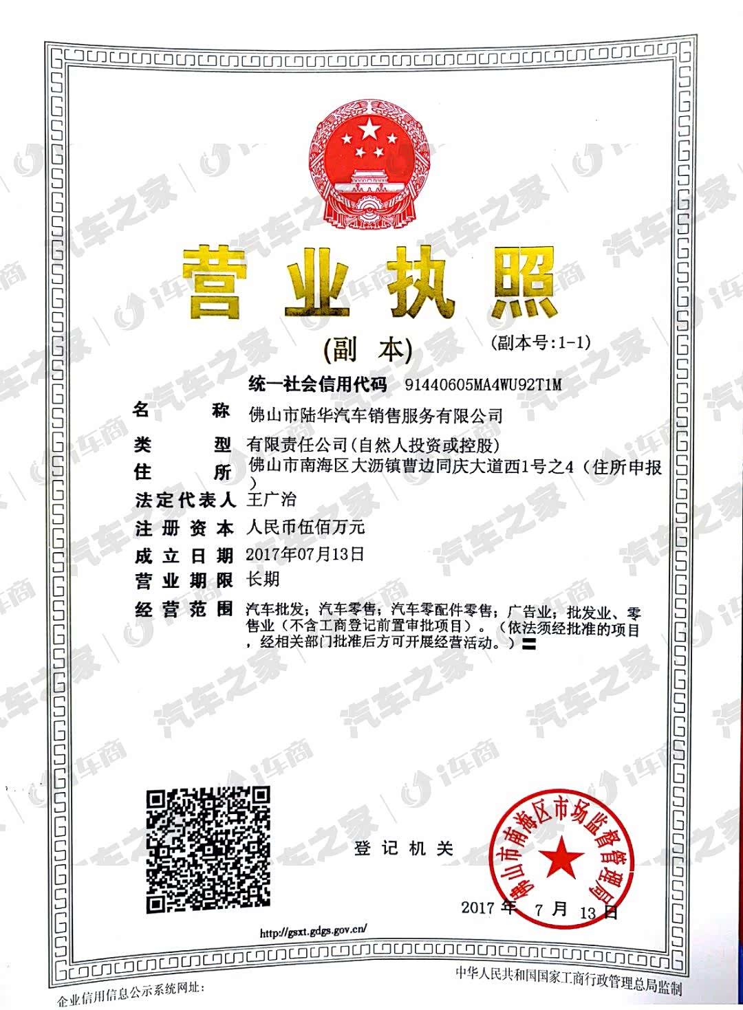 公司全称:佛山市陆华汽车销售服务有限公司