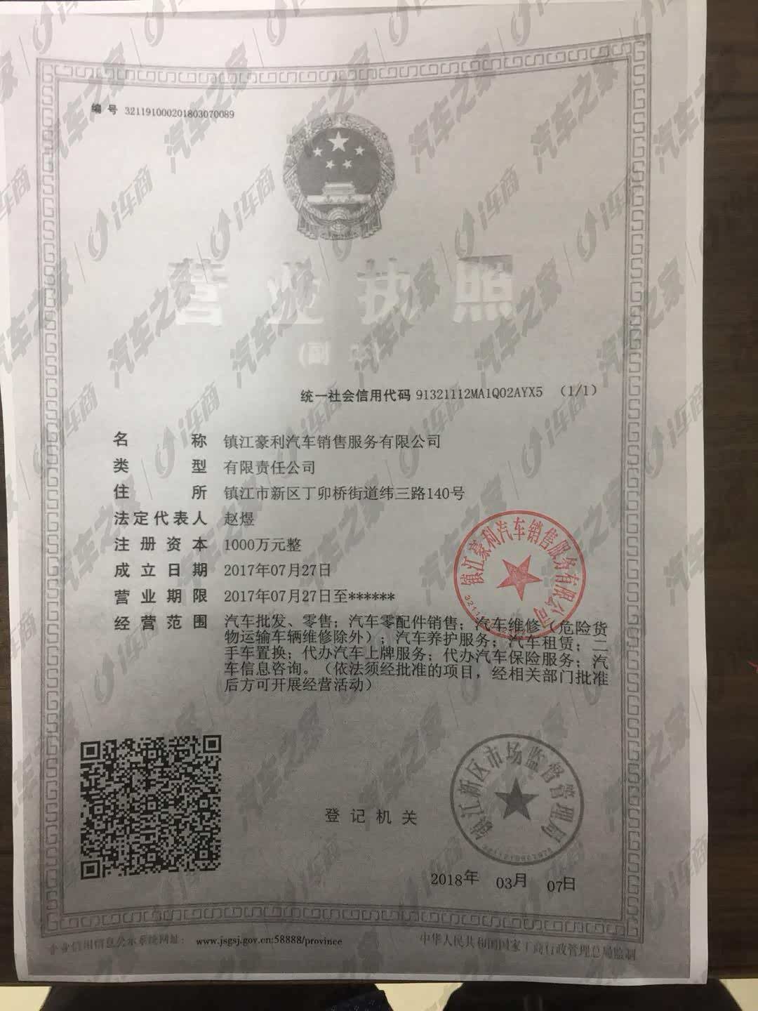 吉利汽车镇江豪利丁卯店