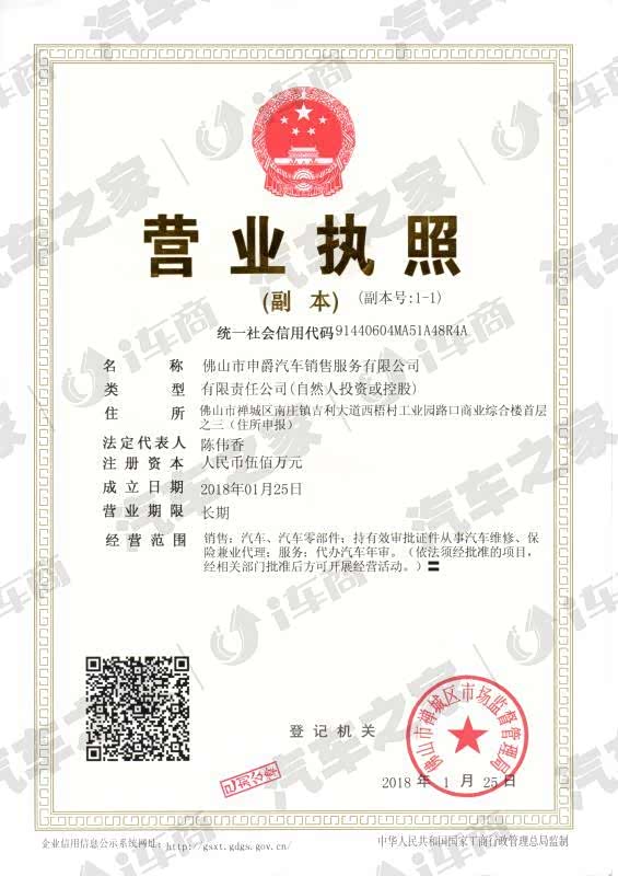 佛山市申爵汽车销售服务有限公司