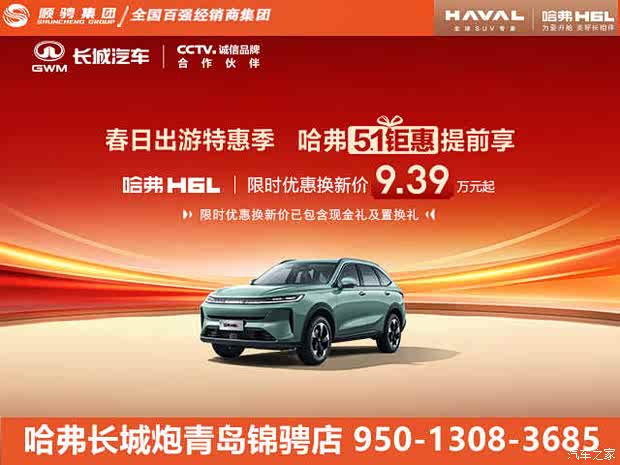 限时优惠换新价低至9.39万元起(已包含现金礼14000元及置换礼10000元)。当诚意十足的购车政策,遇上产品力全面进阶的哈弗H6L,一场关于“换新出发”的春日叙事就此展开。