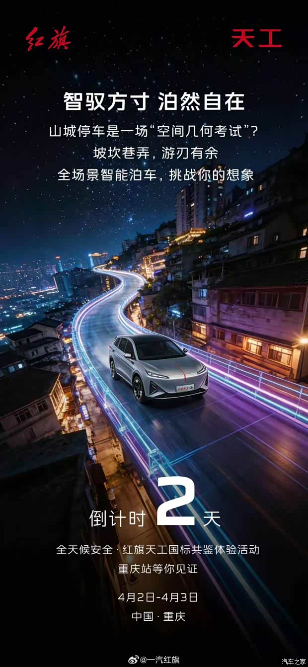 8D魔幻山城,停车是一场“空间几何考试”? 红旗司南智驾,以全场景智能泊车辅助从容挑战跨楼层记忆泊车、极限侧方、断头路。这一次,我们“智”在必得。全天候安全·红旗天工国标共鉴体验活动重庆站,邀你亲眼见证。