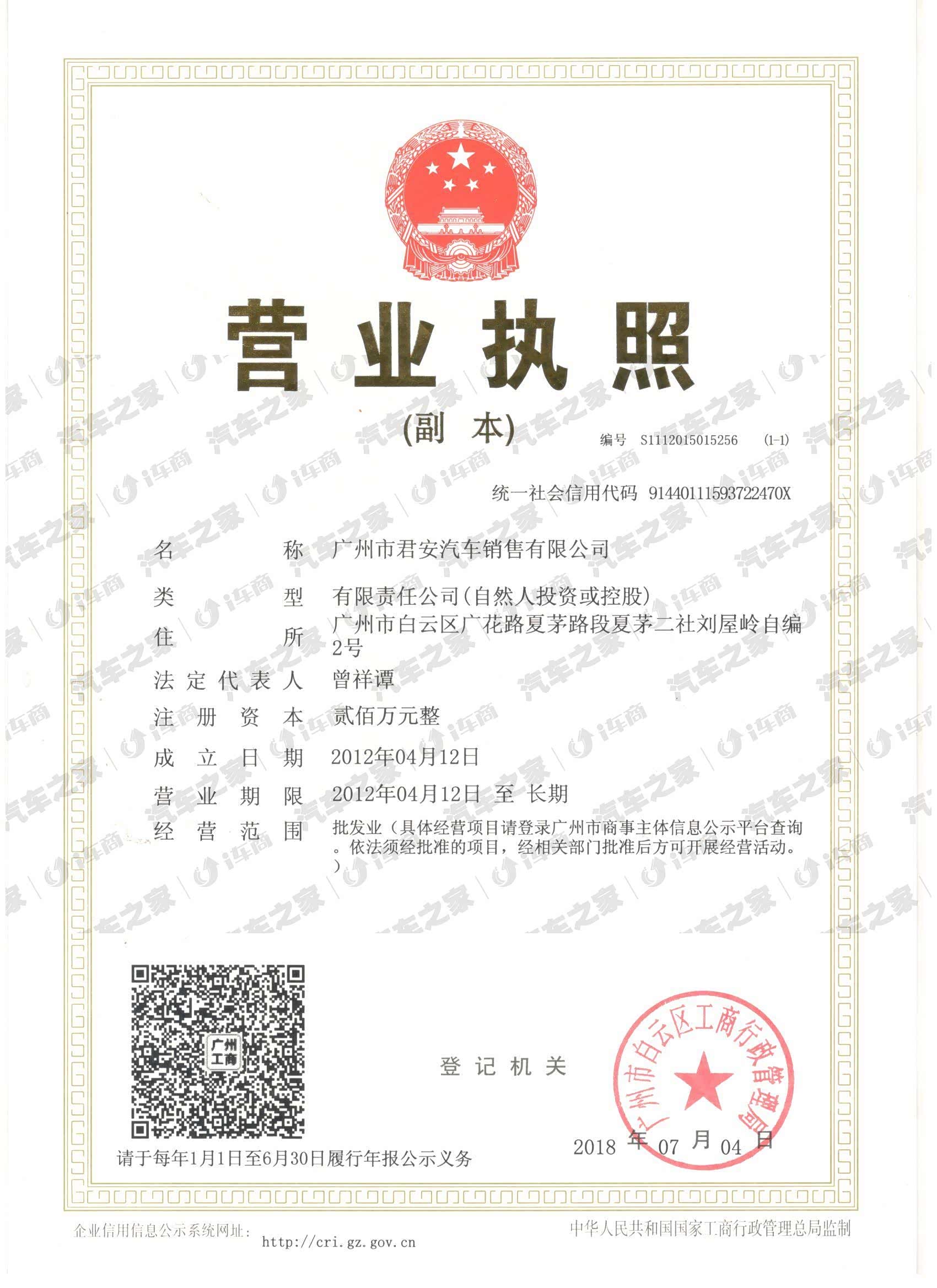广州市君安汽车销售有限公司