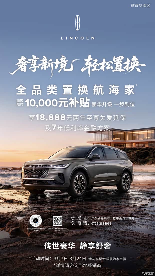 林肯航海家四驱焕新升级,全品类置换享南区限时福利: