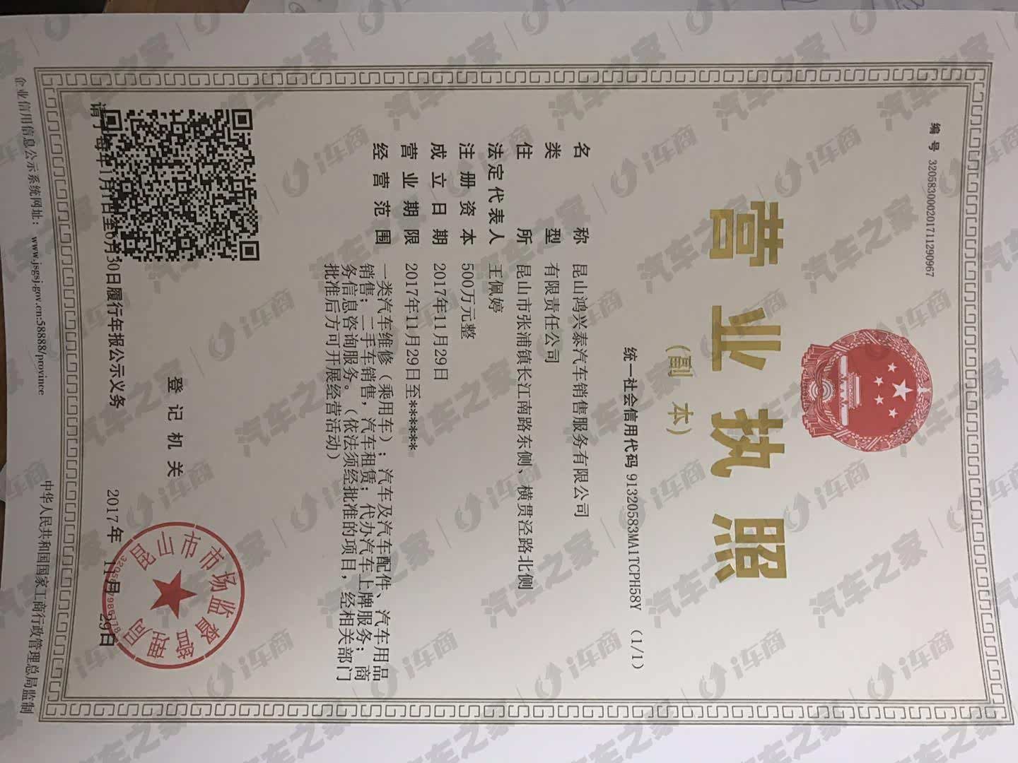 昆山鸿兴泰汽车销售服务有限公司