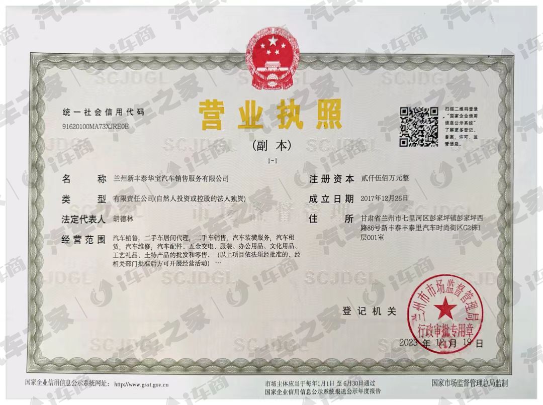 甘肃省兰州市七里河区彭家坪镇彭家坪西路86号新丰泰丰泰里汽车时尚街区G2栋1层001室