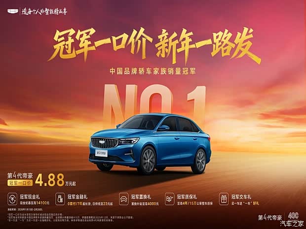 荣耀400万 加配不加价 第4优帝豪限时感恩价5.59万元起