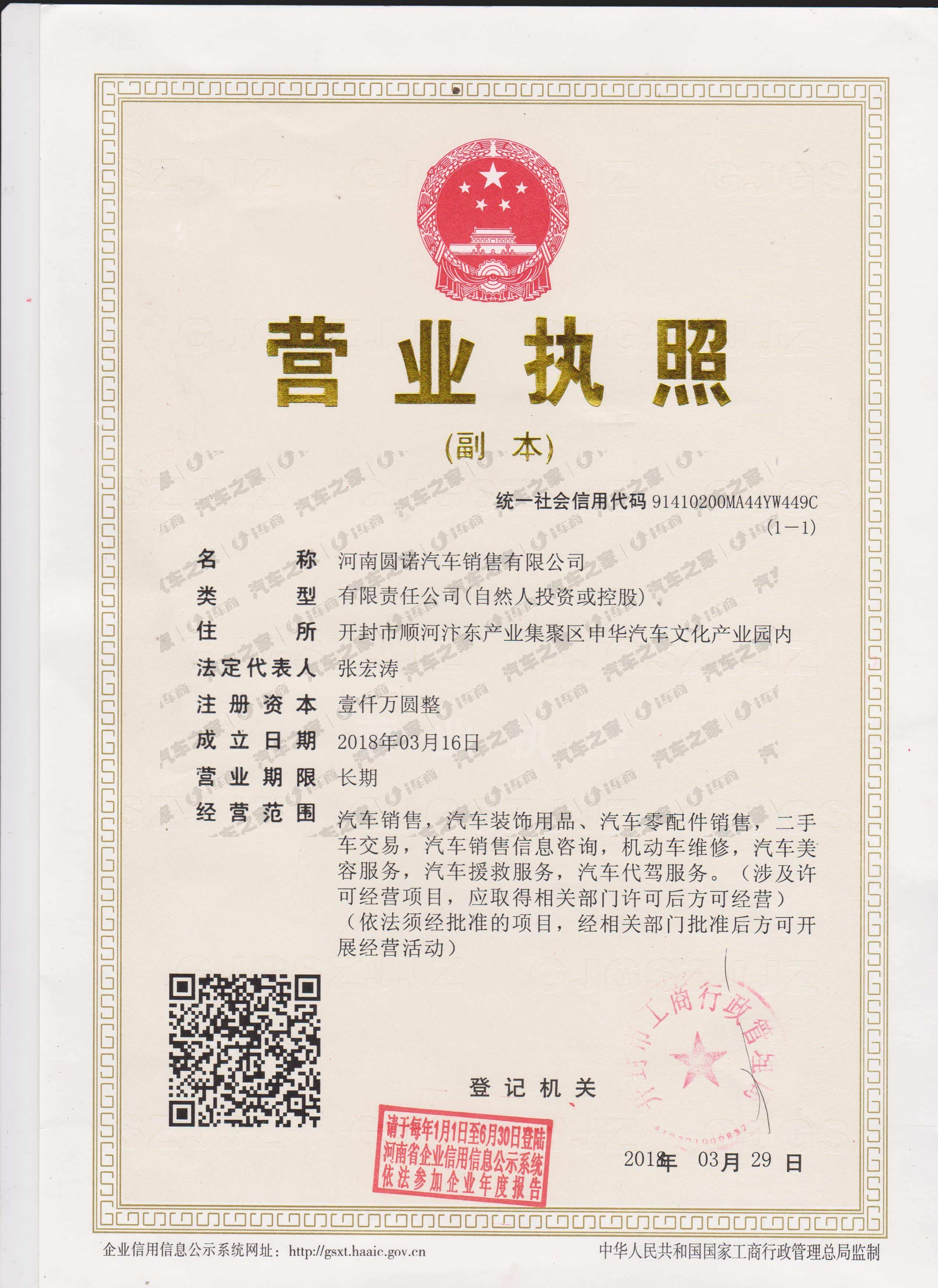 河南圆诺汽车销售有限公司