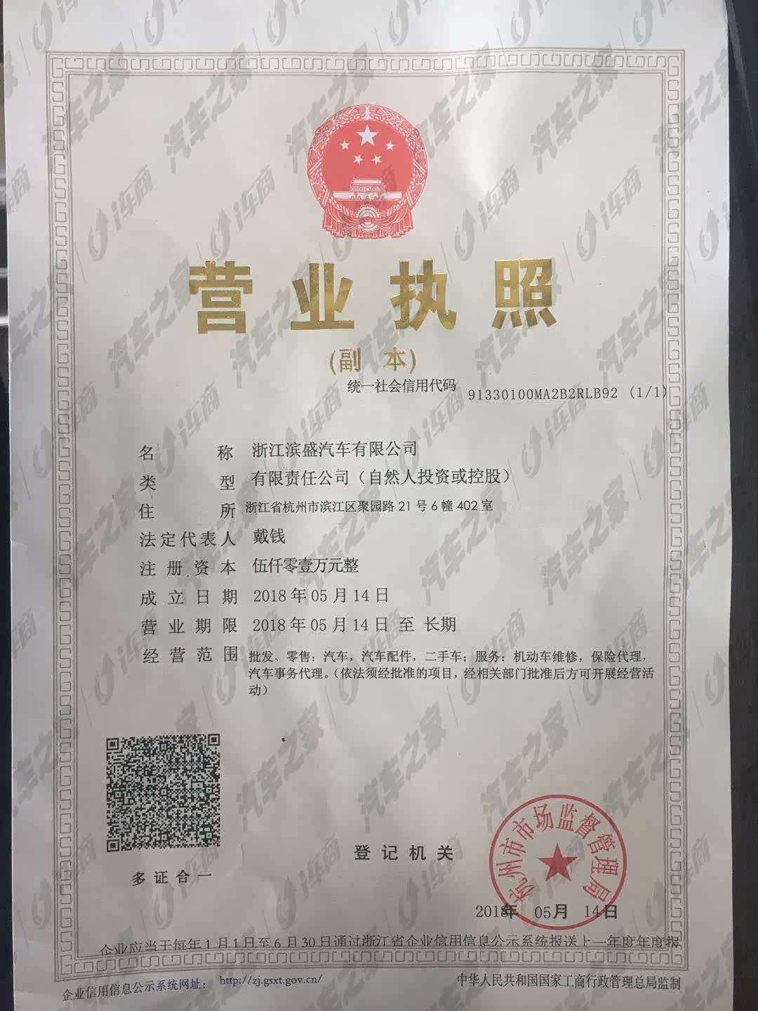 公司名称:浙江滨盛荣威汽车有限公司