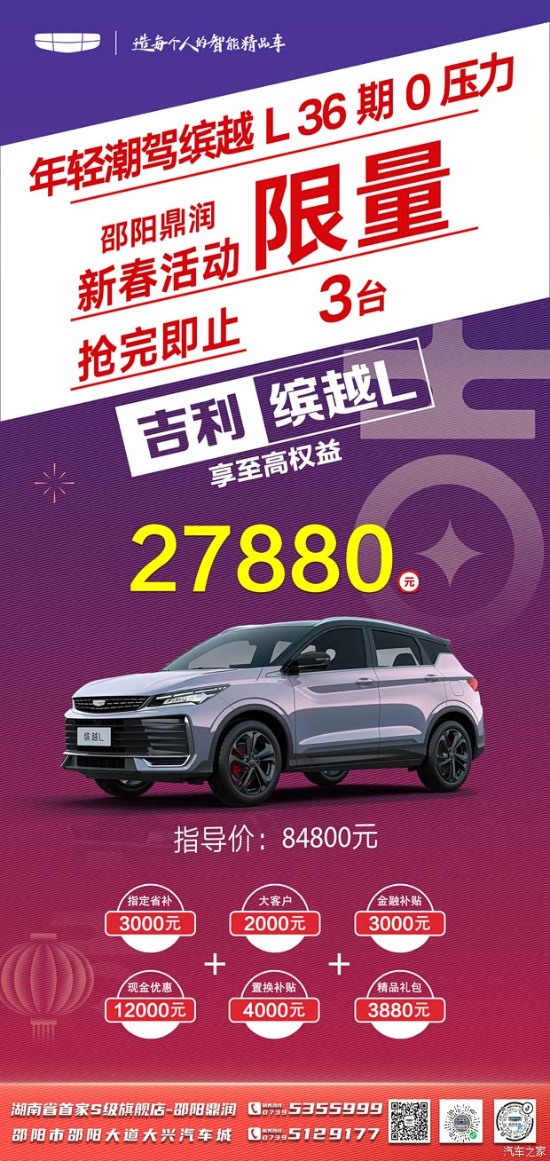 邵阳鼎润吉利缤越L仅需27880元就能开回家