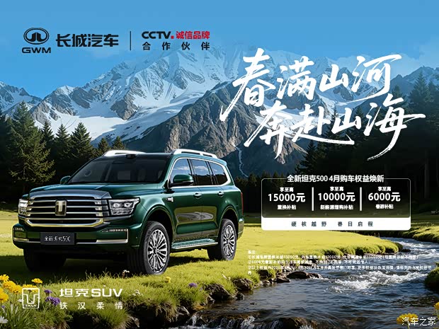 1。春满焕新礼:长城品牌车型置换享15000元补贴,其他品牌车型置换享12000元补贴,长城品牌车型增购享7000元补贴(增购与置换不同享);