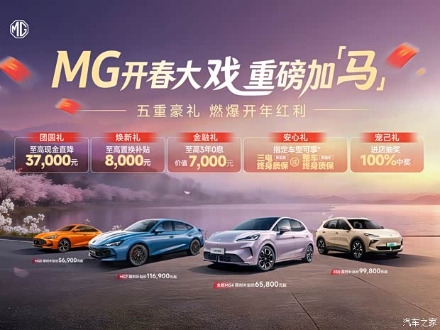 在提供越级价值的同时,MG7 2026款也同步释放了诚意十足的购车权益:新车全系现金优惠至高2.4万元,2月15日前提车的用户可享至高3万元上市限量权益,包括价值7000元的8万元定额贷(2年0息),价值3000元的全新车色冰岛蓝、价值2000元的前排座椅通风以及至高8000元的置换补贴;用户下订2.0T车型额外可享价值万元的整车终身质保和终身免费保养。