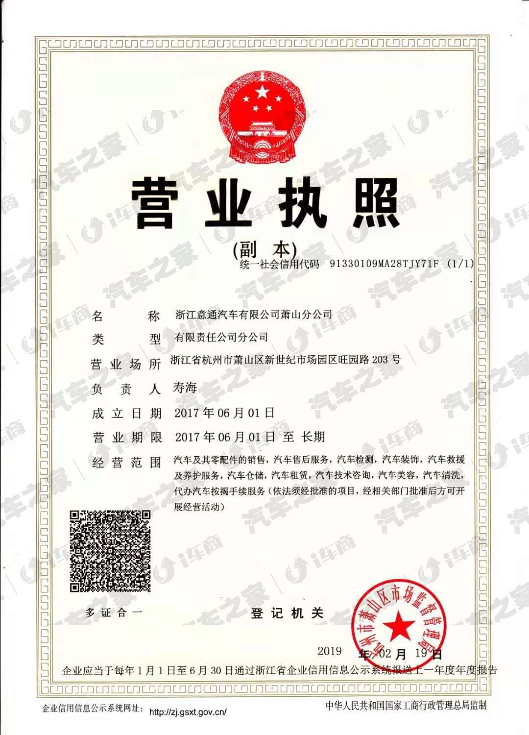 浙江意通汽车有限公司萧山分公司成立于2018年,由 “世界500强企业”浙江物产集团旗下的浙江物产元通汽车集团投资组建,是上汽大通汽车有限公司杭州湖州地区的特许经销商,集整车销售、维修服务、配件供应、用户满意度为一体的4S专营店。公司拥有宽敞明亮的汽车展示大厅、大型汽车维修车间,及一批训练有素的高素质服务技术人才,公司推行的上汽集团标准化销售服务流程及“5S”管理工程,为个人和企事业单位的公商务用车提供优质服务打下了坚实的基础。
