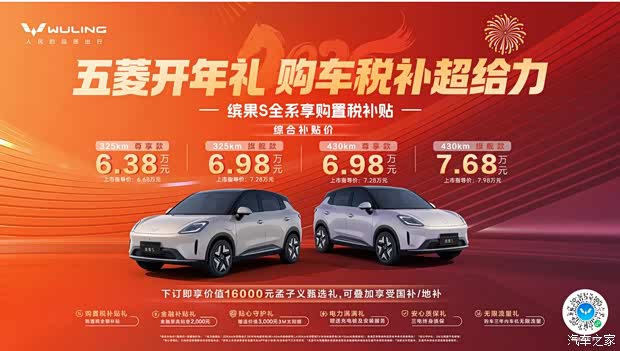 缤果S共推出325km尊享款、325km旗舰款、430km尊享款、430km旗舰款四款配置,上市指导价为6.68万-7.98万元。