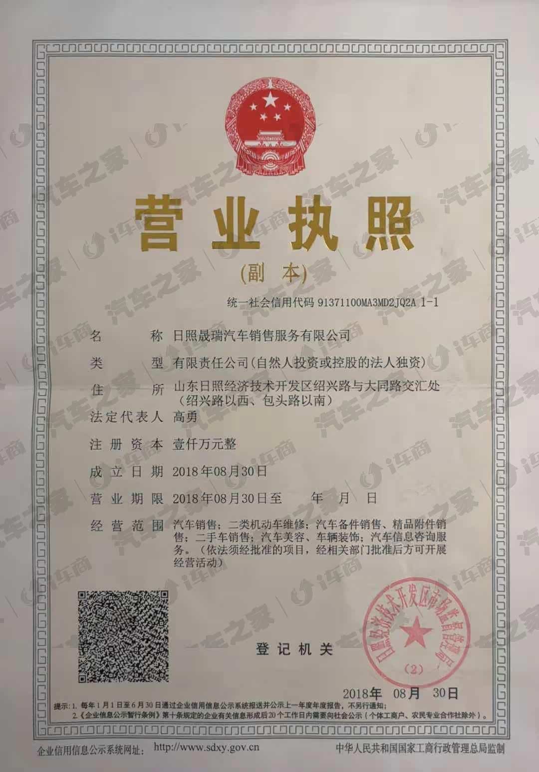 日照晟瑞汽车销售服务有限公司