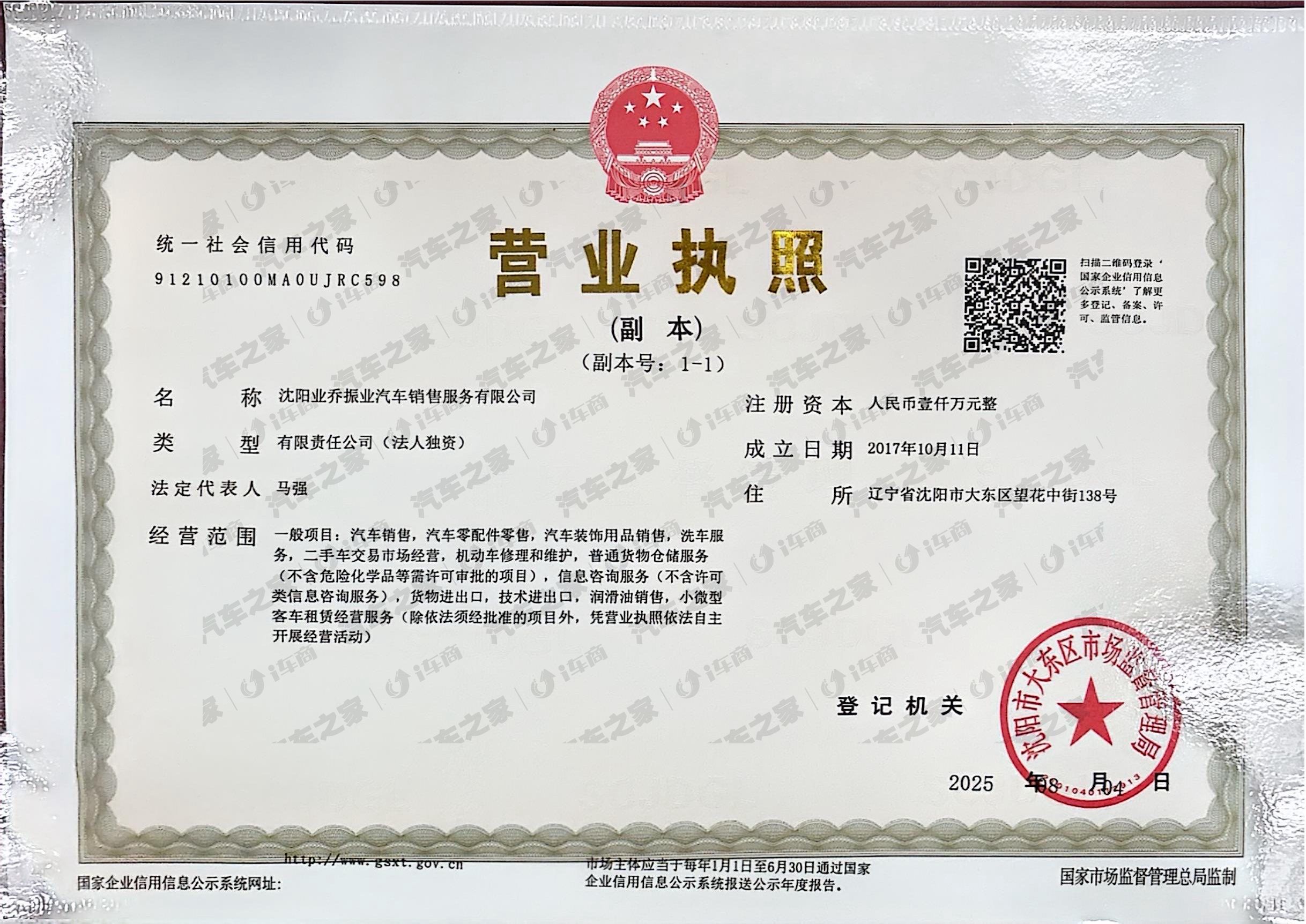 沈阳业乔振业汽车销售服务有限公司拥有先进的设备和专业的售后团队,具有包括预检工位、终检工位、钣金工位、喷漆工位等12个专业的维修工位。沈阳业乔振业汽车销售服务有限公司将秉承业乔集团以“买车到业乔,服务到业乔”为理念,以“提高客户消费体验,降低客户消费成本”为宗旨,以“业乔汽车就在您身边”为愿景,致力于为广大车主提供全方位的客户关怀及品牌专属的尊贵体验以及便捷高效服务关怀。推出的 “96767在线”、“乔乔车小程序”、“乔乔车APP”等信息化产品,满足不同消费者、不同场景、不同车辆周期的客户需求,“养车无忧 ”等一系列通用标准化服务产品,高度契合客户汽车生活形态需求。