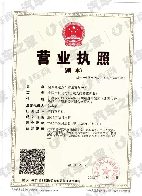 定西红达汽车贸易有限公司