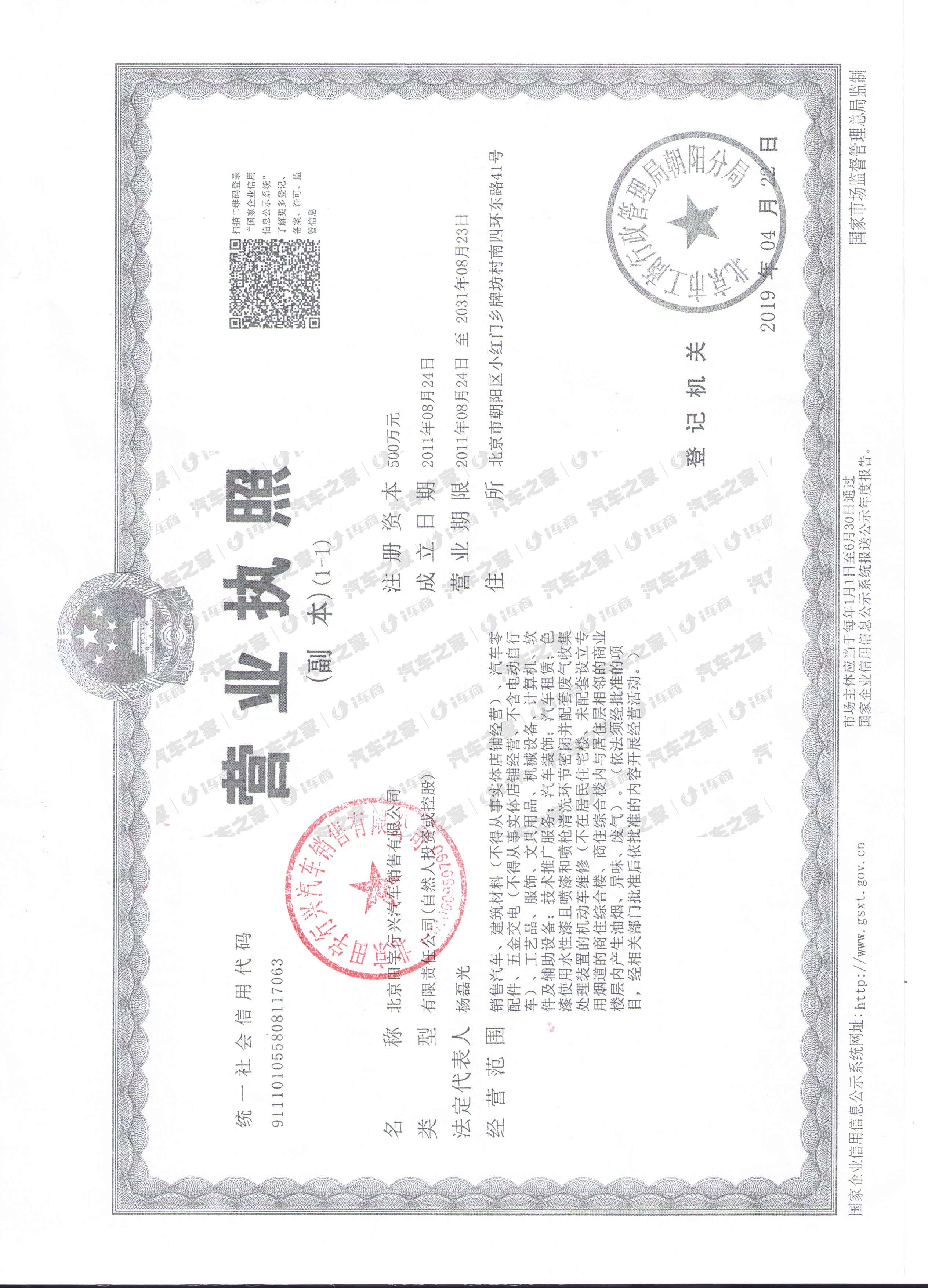 北京田宇行兴汽车销售有限公司