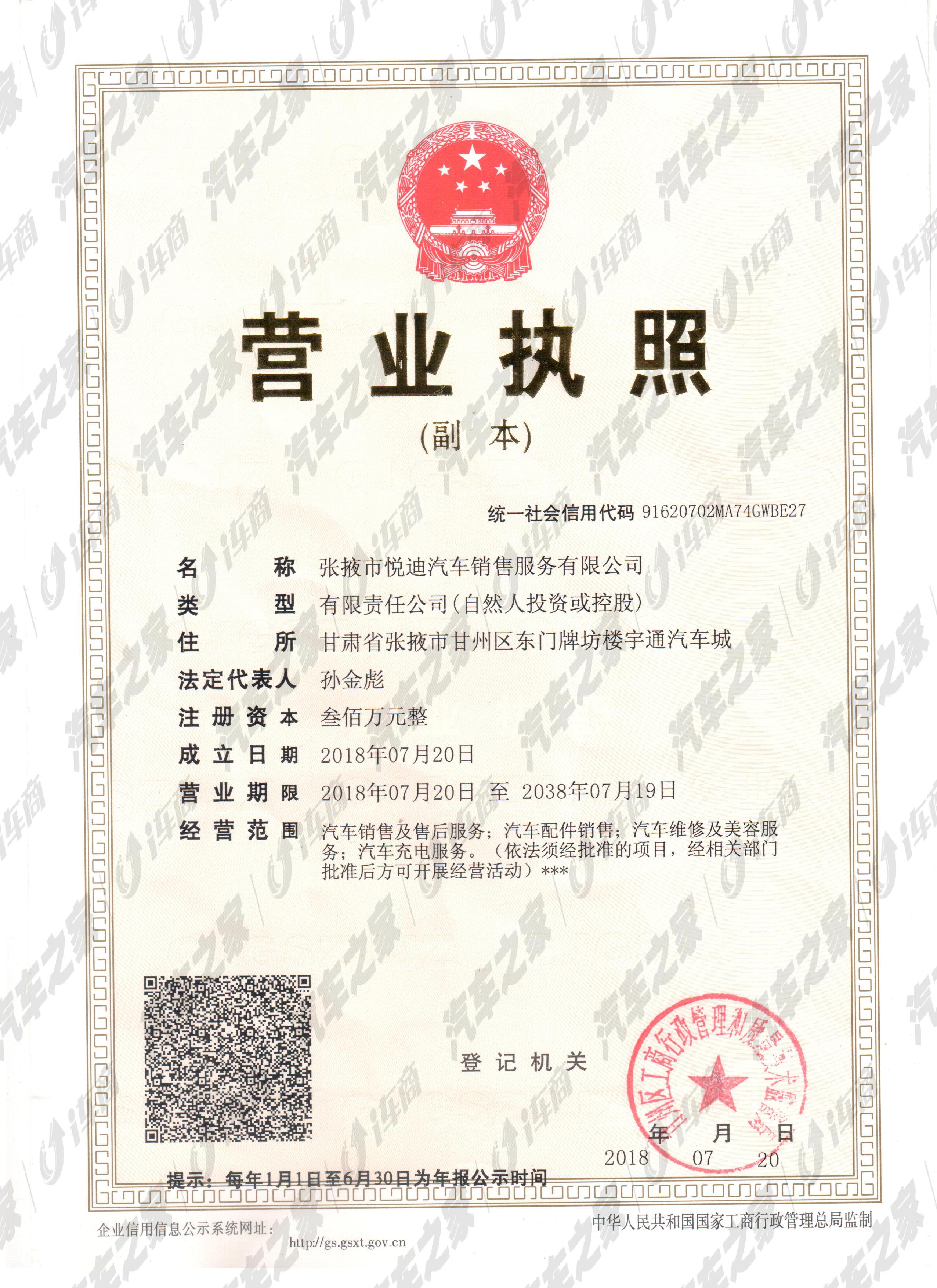 张掖市悦迪汽车销售服务有限公司