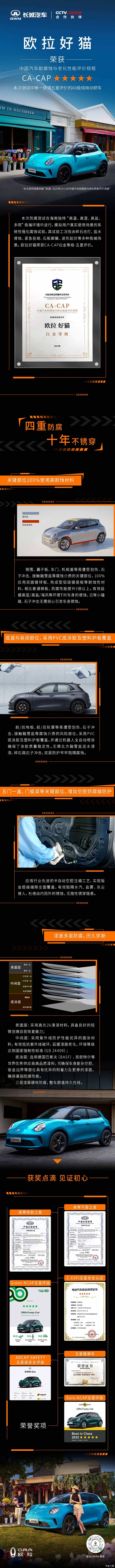 欧拉好猫荣获CA-CAP中国汽车耐腐蚀与老化性能评价规程白金等级-五星评价!