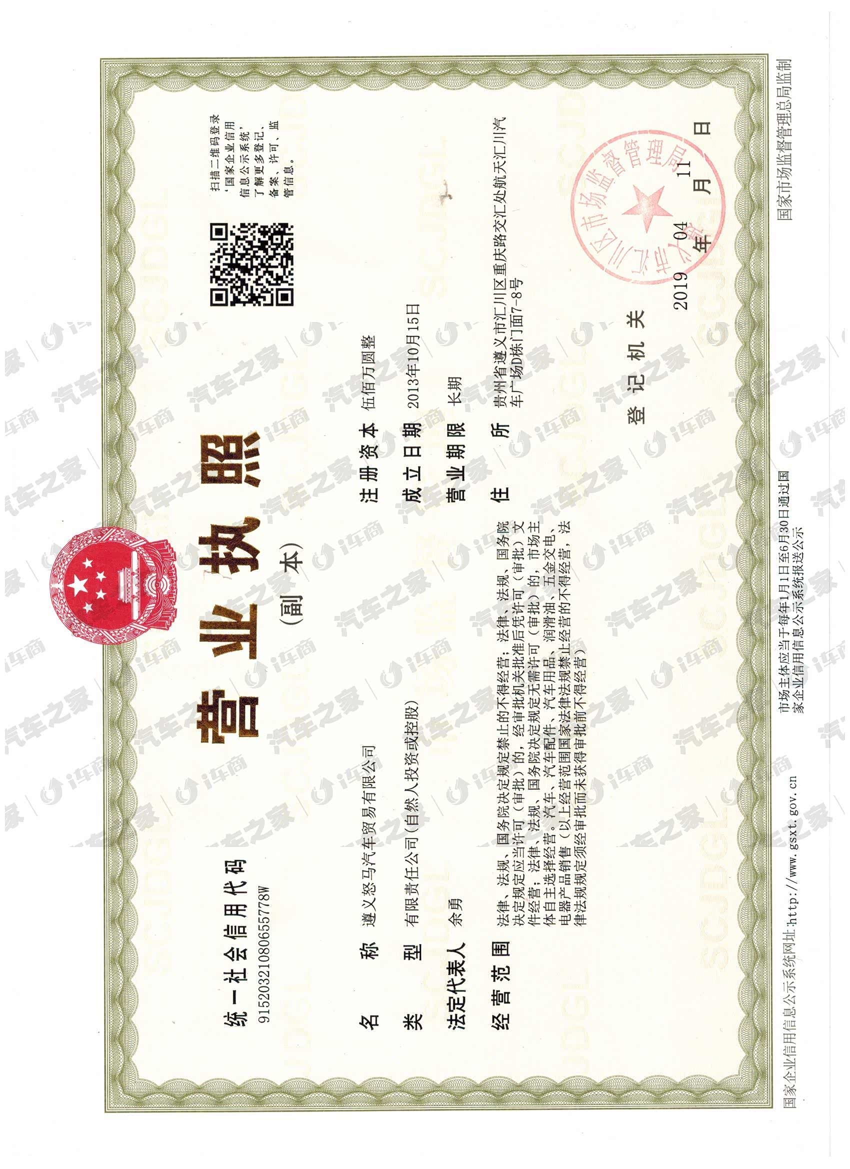 遵义怒马汽车贸易有限公司成立于2013年10月15日,位于遵义市汇川区汇川大道与重庆路交汇处,交通方便。是比亚迪授权遵义地区唯一一家纯电动4S店,从事整车经营、汽车维修、零配件供应,办理汽车保险、上牌、年审、过户等相关业务。