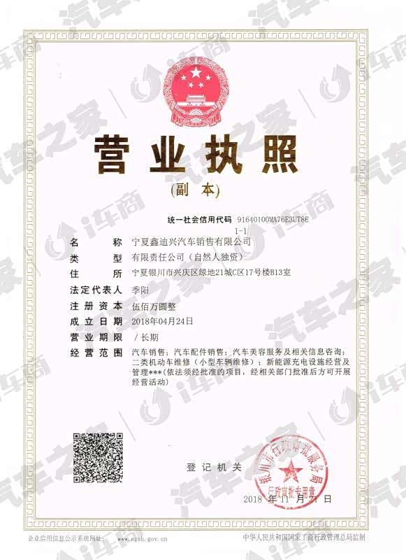 宁夏鑫迪兴汽车销售有限公司是比亚迪新能源汽车在宁夏地区唯一一家授权代理经销商,提供比亚迪纯电动汽车的销售与售后服务,目前在绿地21城已建成新能源体验中心,建筑面积达2200㎡,拥有独立的体验展厅、客户接待区和售后大型维修车间,致力于让每一位客户享受到比亚迪高标准、高品质“智享”服务。
