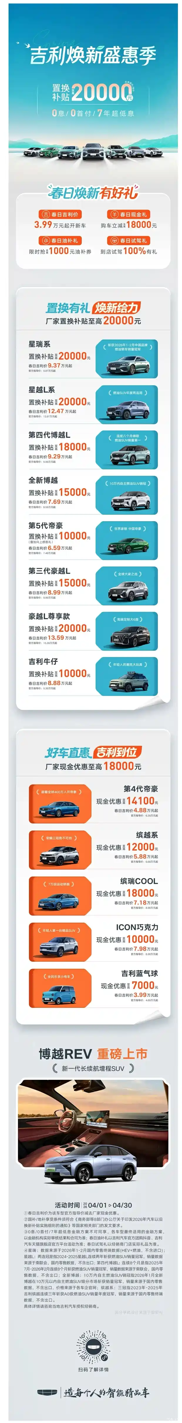 4月吉利焕新盛惠,置换补贴至高20000元