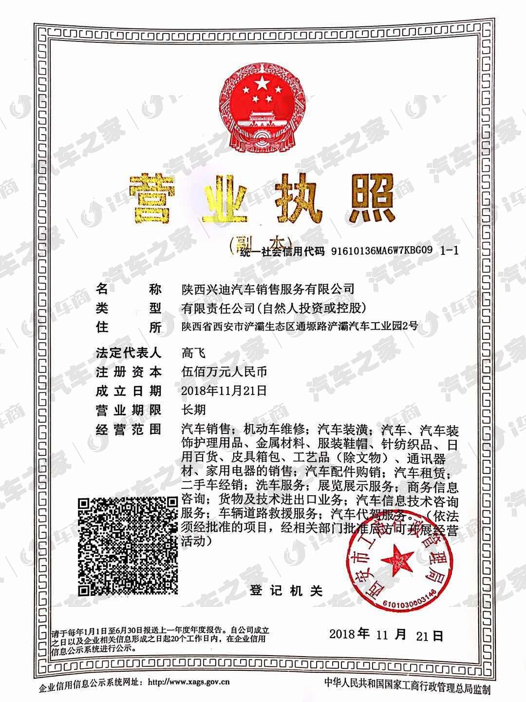 陕西兴迪汽车销售有限公司成立于2018年11月,注册资金500万,是比亚迪授权销售售后服务店。集比亚迪汽车销售、零配件、服务、信息反馈于一体的标准4S店,主要销售及售后服务车型为:比亚迪全新一代唐(燃油、DM、EV)、比亚迪秦pro(燃油、DM、EV)、全新一代宋(燃油、DM、EV)、元(燃油、EV)、速锐、F3等车系。