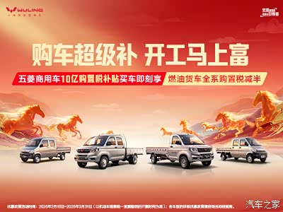 开工买车选五菱,省钱一步到位! 五菱商用车10亿购置税补贴正式开启! 五菱燃油货车全系,购置税直接减半,买车就能享, 用车更省钱,创富选五菱,购车更轻松! 皮实省油、能拉能跑 省钱又省心,创业首选五菱!