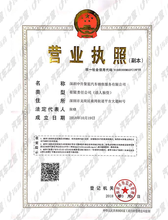 深圳中升聚星汽车销售服务有限公司