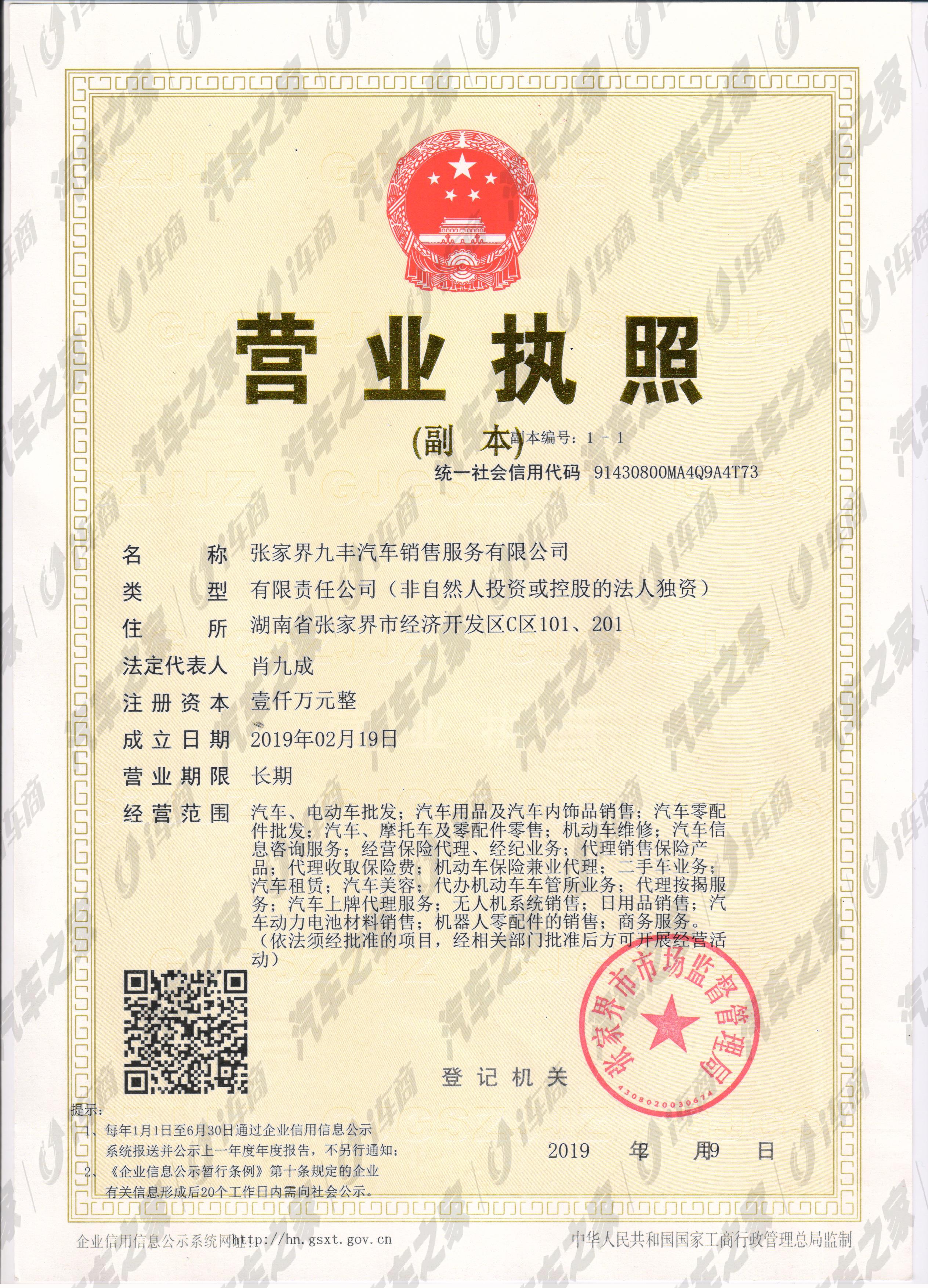 湖南省张家界市永定区阳湖坪工业园区九城汽车大世界内