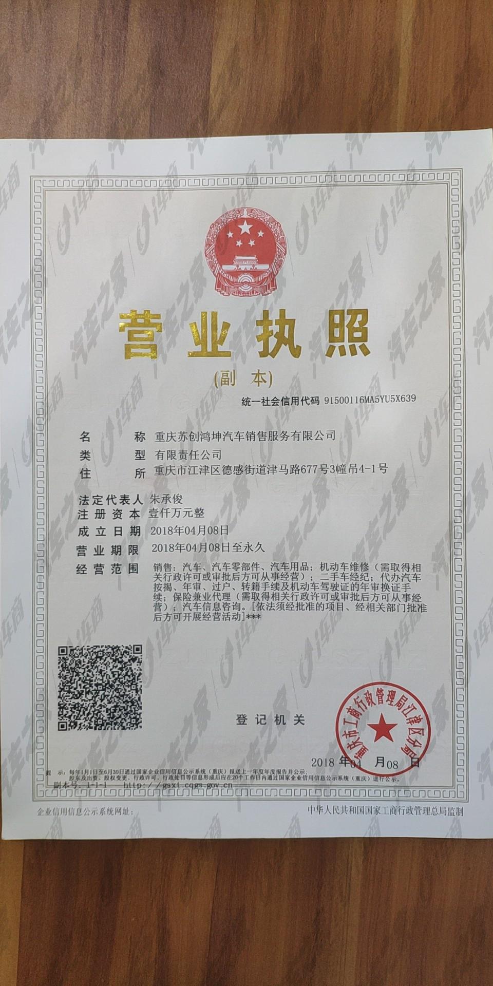 重庆苏创鸿坤汽车销售服务有限公司