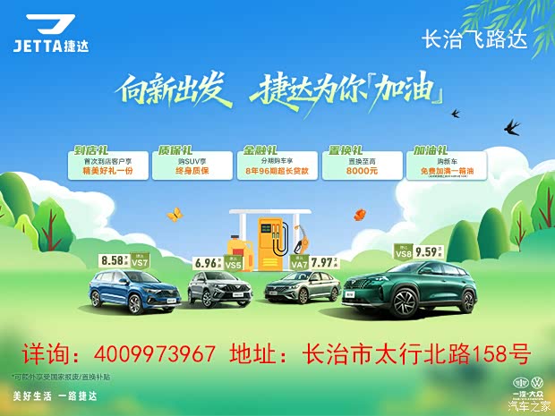 近日,本店内有捷达VS8销售,颜色可选,目前购车部分车型可优惠2.50万元,感兴趣的朋友可以到店咨询购买,详情见下表: