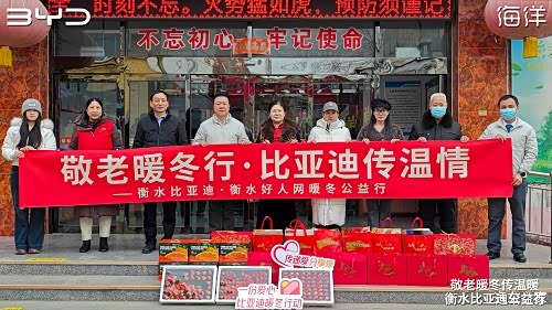 寒冬有暖,大爱无疆。1 月 30 日,衡水比亚迪昱和天晟店携手店内爱心车友及志愿者们,带着满满诚意与暖心物资,先后走进衡水振华养老院与衡水桃城养老院,开展“冬日送温暖” 公益慰问活动,以实际行动践行企业社会责任,为老年朋友们送去冬日里的温情与关怀。