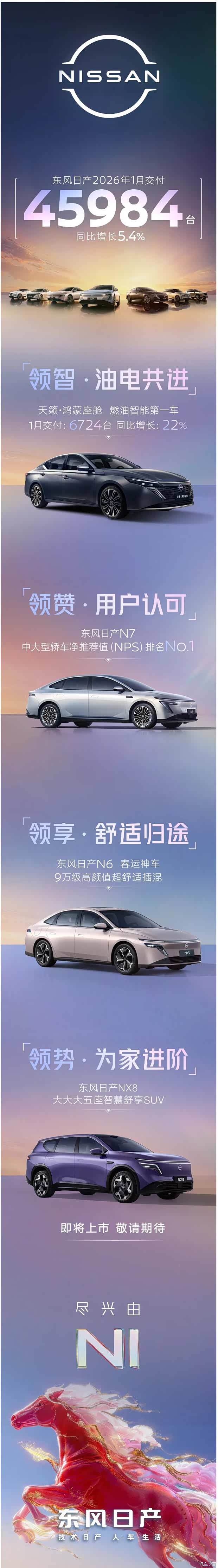 东风日产2026年1月全车系交付45984台