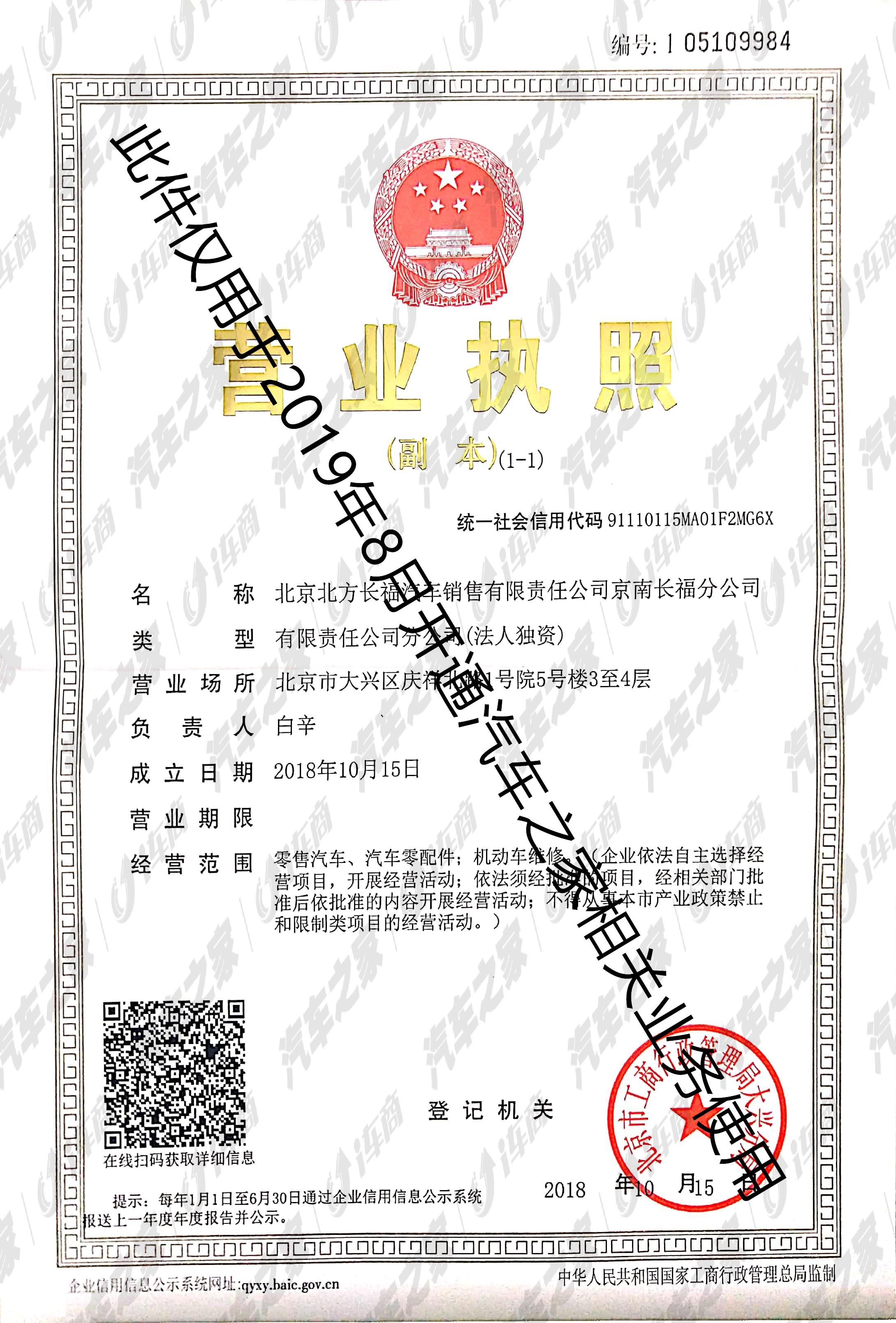 北京北方长福汽车销售有限责任公司京南长福分公司
