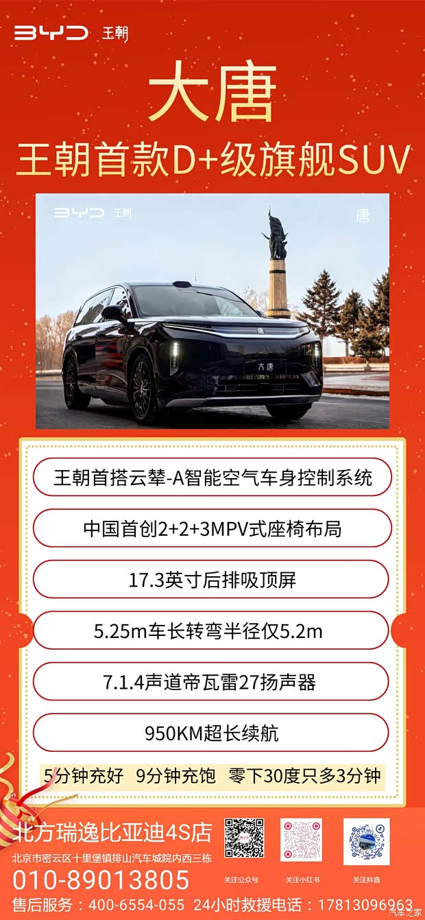 比亚迪大唐|王朝旗舰SUV新标杆 云辇-A悬架|2+2+3座椅|17.3英寸后排屏 帝瓦雷音响|950KM续航|5分钟闪充 大空间、强性能、超舒适,家用商务全能打 #比亚迪大唐 #旗舰SUV #北方瑞逸