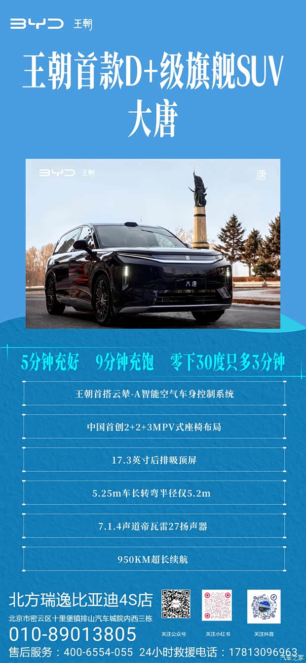 比亚迪大唐|王朝首款D+级旗舰SUV 闪充快到离谱:5分钟充好,9分钟充满! 续航卷到极致:950KM超长续航! 空间/智能/舒适全拉满,这才是旗舰该有的样子! #比亚迪大唐 #旗舰SUV #北方瑞逸比亚迪