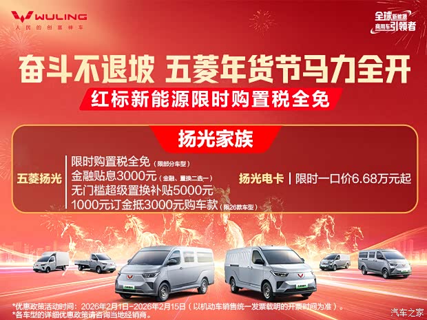 五菱汽车广州华贵销售中心五菱扬光红标新能源限时购置税全免,感兴趣的朋友可以到店咨询购买,具体优惠信息如下: 1、限时购置税全免(部分车型); 2、金融贴息 3,000 元/台;(金融或置换二选一); 3、无门槛超级置换补贴5000元; 4、1000元订金抵3000元购车款(部分车型); 地址:广州市番禺区东环街番禺大道北1025号(蔡二汽车城内)