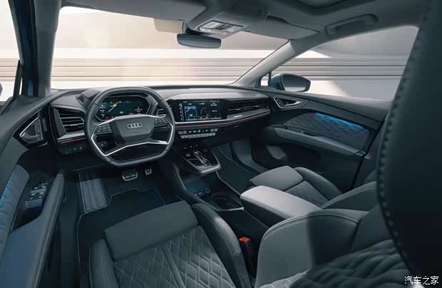 奥迪Q4 e-tron在内饰设计上秉承了一以贯之的豪华理念,“科幻星舰”座舱以驾驶员为中心,10.25英寸的奥迪虚拟座舱增强版、11.6英寸MMI触摸屏、双平底多功能真皮运动方向盘等合理的人机工程学设计,让美学设计与功能性完美统一。此外,A8L Horch同款的门板豪华珩缝工艺、30*30炫彩环境氛围灯、SONOS豪华音响系统等配置,带给用户全感官的豪华体验。