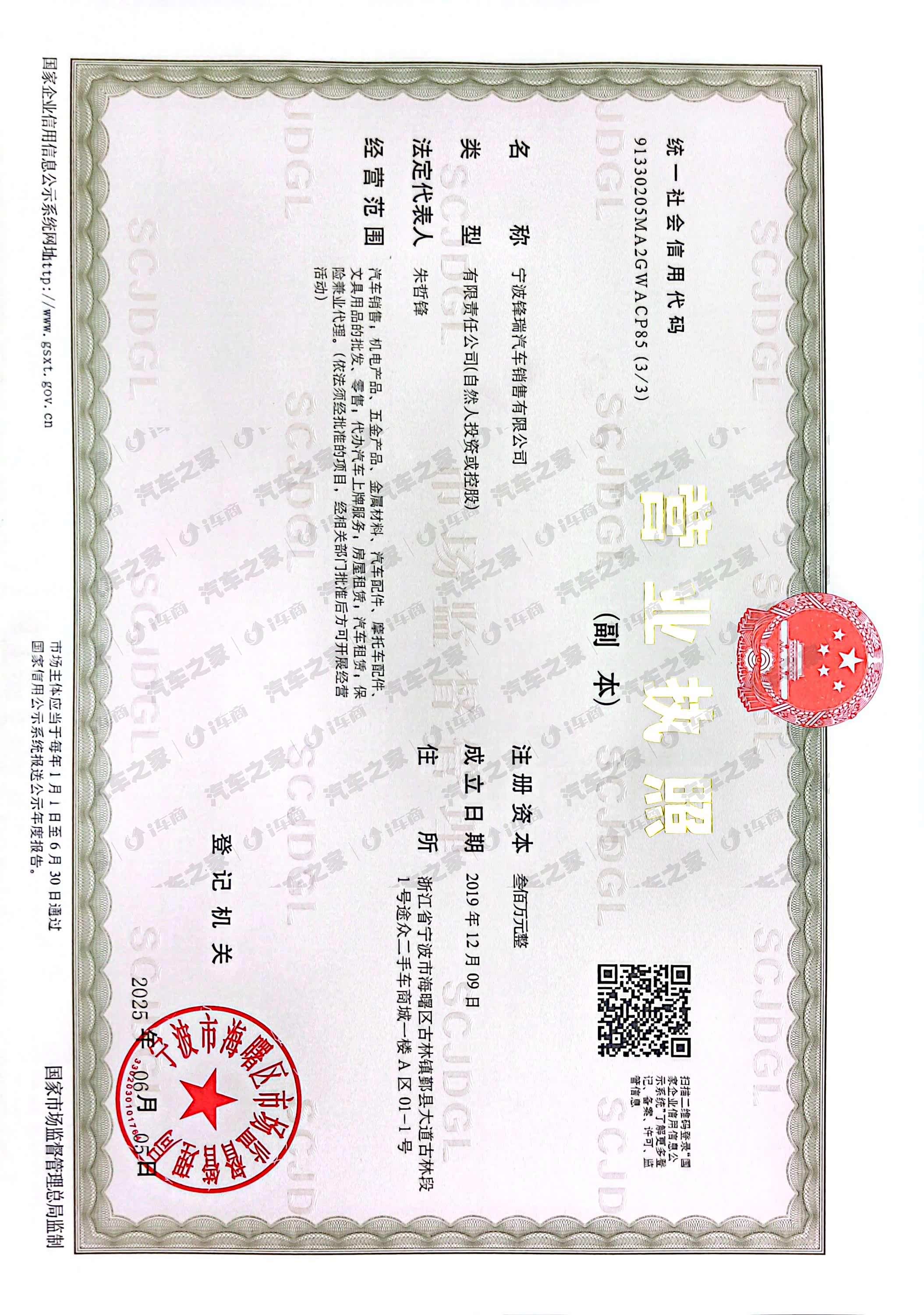 宁波锋瑞汽车销售有限公司