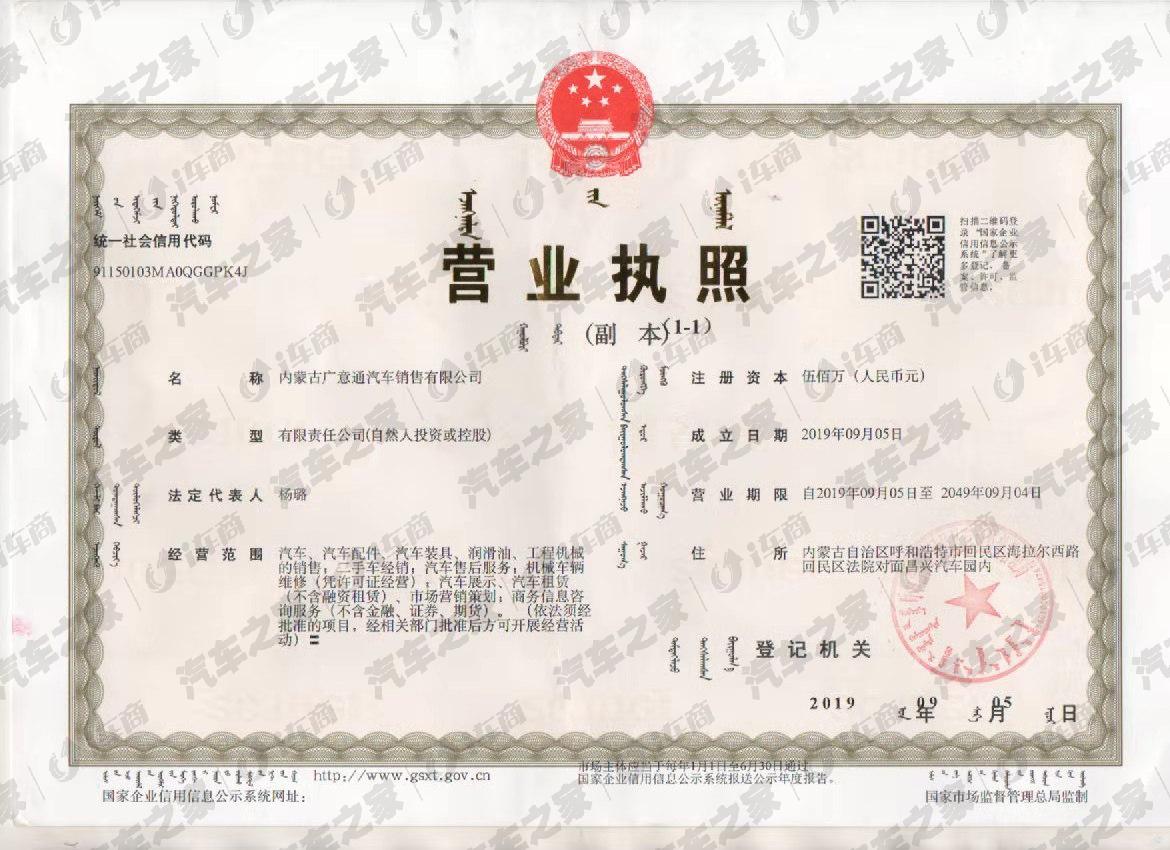 公司地址:呼和浩特市海西路回民区法院对面昌兴众合汽车园底商-内蒙古广意通吉利4S店