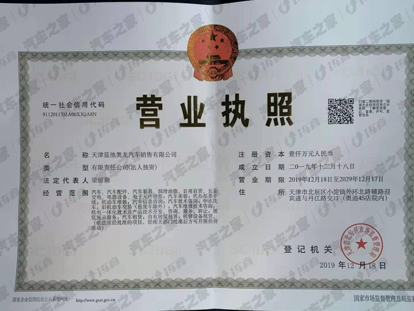天津蓝池奥龙汽车销售服务有限公司坐落于天津市北辰区迎宾道与丹江路交口,是“中国服务业500强”---“蓝池集团”在天津地区高端品牌4S店,一汽奥迪厂家授权的奥迪4S旗舰店。