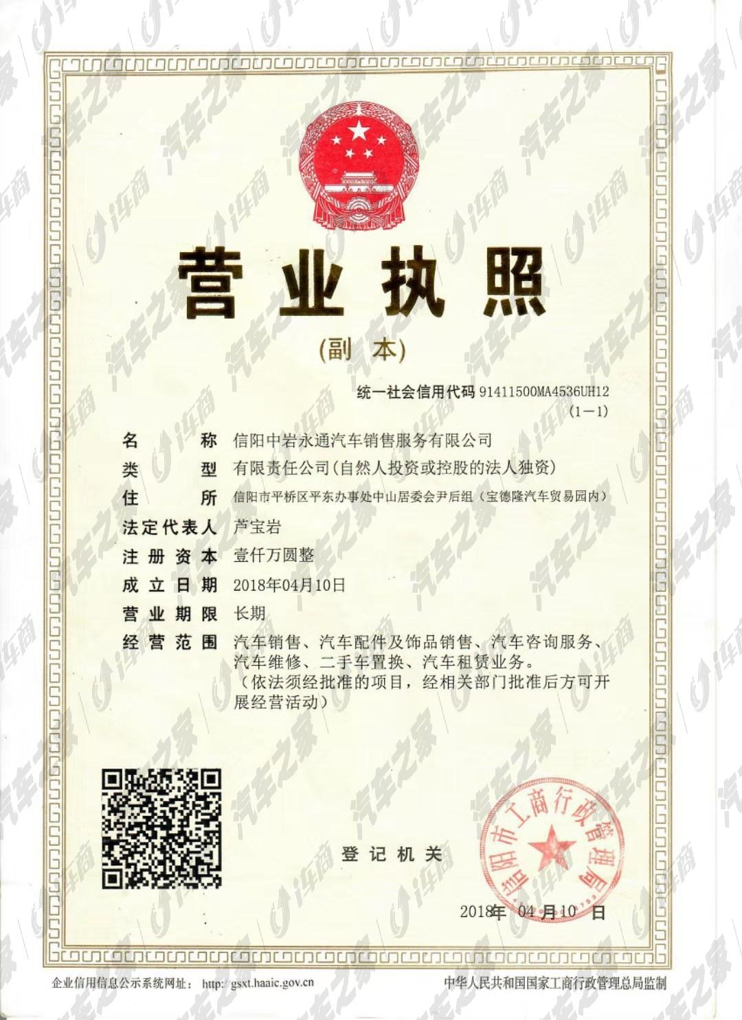 信阳中岩永通汽车销售服务有限公司隶属于河南信阳中岩集团旗下,成立于2018年4月,是信阳地区第三家别克汽车销售有限公司授权的集整车销售、维修服务、备件供应、信息反馈为一体的标准型4S店。主要经营凯越、君威、君越、英朗、阅朗、昂科拉、昂科威、昂科旗、GL6、GL8等车型的销售及售后维修等。