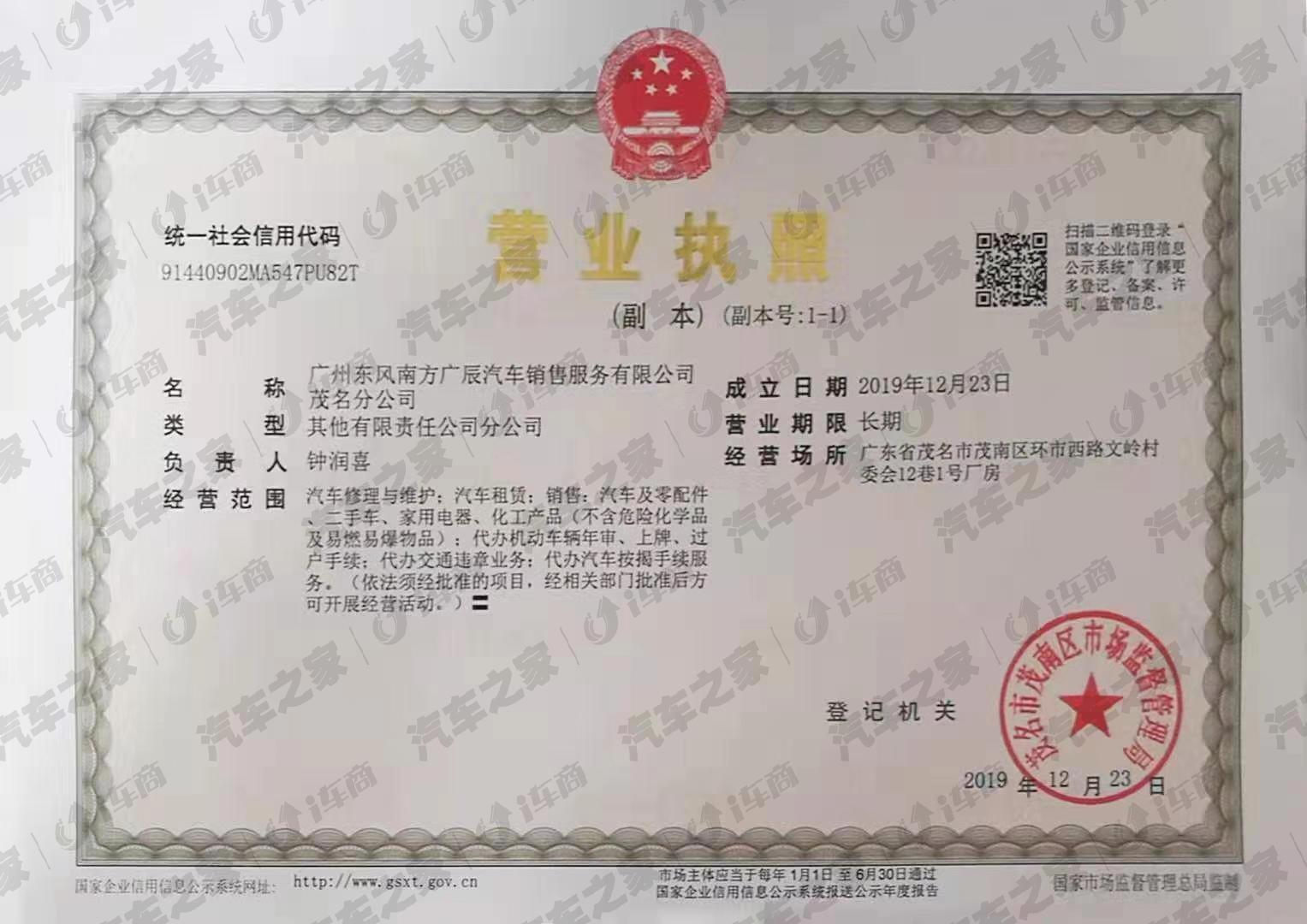 广州东风南方广辰汽车销售服务有限公司茂名分公司